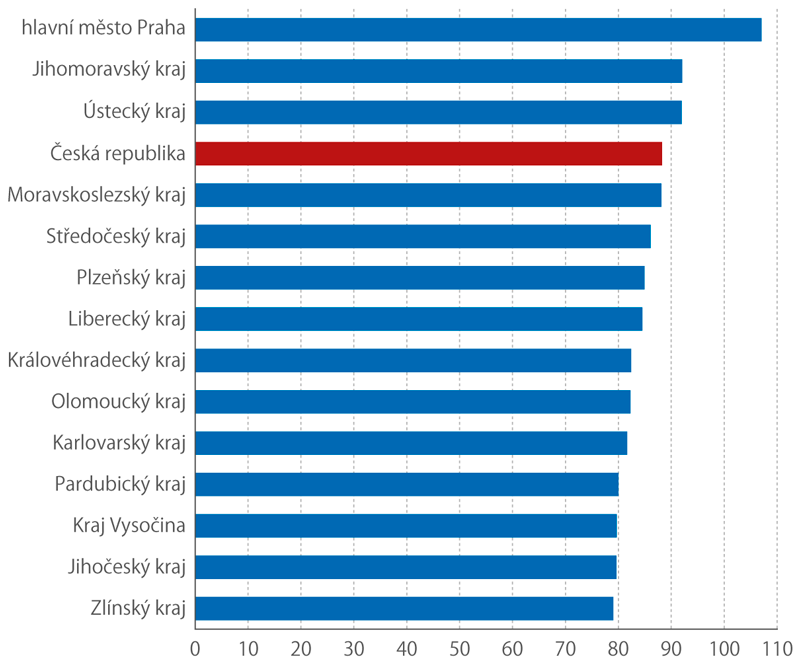 Spotřeba vody domácnostmi v Česku v roce 2024 (l / osobu a den)